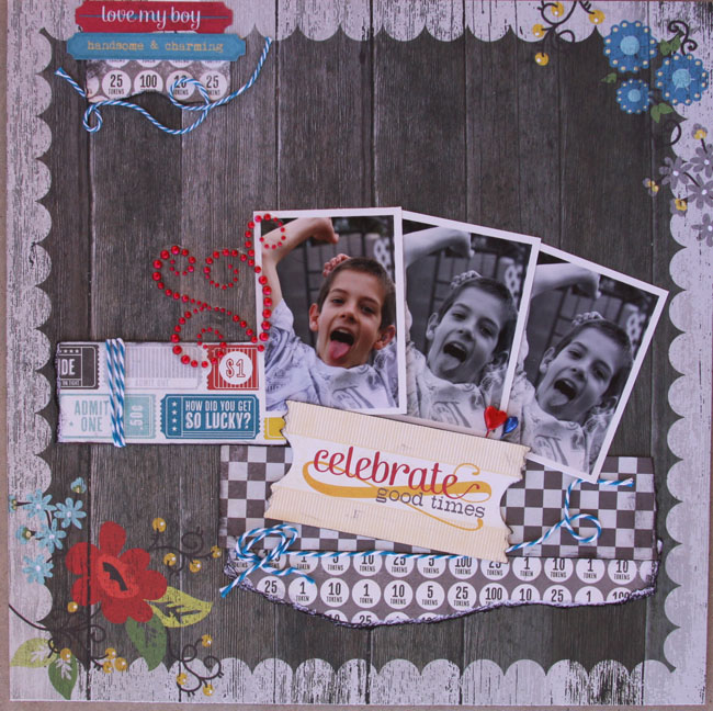And this layout I did of Joseph when we were doing a "football photo shoot" and he was messing with me hiding behind the football. Note that the SWISH is referring to the NIKE swish symbol....
